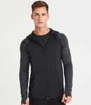 Hood and sleeves 92% polyester/8% elastane. DynamicCool™ responsive blended fabric. Contrast melange effect grown on adjustable hood and raglan sleeves. Taped neck. Full length zip. Front pouch pockets. Thumbholes on cuffs. Tear out label.